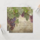Matching Couple's Bridal Shower Invite in a Square Paper Invitation Card illustration design which is ideal for Summer, Autumn or Fall Rustic Vineyard outdoor country style weddings at a winery venue location. NOTE: IF USING RSVPS, SELECT THE SMALL SIZE TO FIT IN THESE ENVELOPES THE LARGE ONES WILL NOT FIT. Beautiful red wine grapes and their leaves are hand painted original artwork by Audrey Jeanne Roberts. They have been placed over a warm, worn, distressed wooden fence board background that is antiqued with great texture and subtle decorative vintage printer's ornament swirl scroll elements that add a touch of elegance. The perfect mixture of formal and comfortable, elegant and trendy yet a timeless classic wedding invitation collection theme that will be as beautiful when you look at for your twenty fifth anniversary! There is a complete wedding invitation set with coordinating products for bridal shower, couple's shower, rehearsal dinners, ceremonies and wedding receptions.