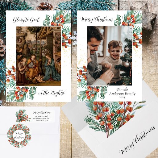 Elegant Red Berries Religious Christian ChristmasDesigned by Alexandra Designs