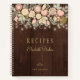 Editable text vintage rustic country chic recipes notebook featuring delicate blush pink, peachy cream, and sage green botanical wildflowers garland on a dark brown barn wood with string lights background. +++++++++++++ This recipe book can be a beautiful gift for your own kitchen or a keepsake personalised gift for someone special, anniversary, birthday, Christmas, bridal shower, or a wedding gift.