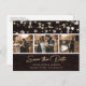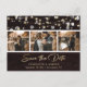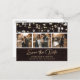 Elegant rustic wood wedding photo save the date postcards featuring a photo collage of 3 images against a rustic wood background adorned with string lights. Easily personalise this rustic photo save the date postcard with your images and wedding details including a wedding website, if desired. For custom requests, please send us a message.