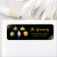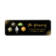 Celebrate the season in style with this elegant Christmas address label featuring a rich black background and a cascade of sparkling ornaments in gold, green, and silver. Each ornament is uniquely designed with leaves, stripes, and honeycomb textures, creating a sophisticated yet festive look. Gold faux glitter accents add a touch of glamour, while the personalized name and address are displayed in a graceful mix of script and clean type - perfect for holiday cards, party invitations, or seasonal packages.