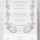 Elevate your special day with this elegant, sage green classic floral design featuring baroque-style scrolls with columns of toile roses and foliage. Includes text fields for your initials. This all-in-one format features a bonus RSVP response card.