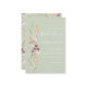 This elegant bridal shower invitation features a sage background and a beautiful array of colourful wildflowers and butterflies at the back. The design is bohemian-inspired, with a whimsical and romantic feel.