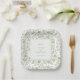 Add timeless elegance to your special day with this chinoiserie-inspired wedding paper plates, featuring a delicate green floral toile border on an ivory background.