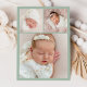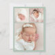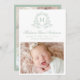 Announce your baby’s arrival with this elegant sage green photo birth announcement card. Featuring your baby’s monogram initial framed by a delicate floral crest in soft sage green on a white background, this design blends timeless elegance with modern botanical charm. Your little one’s full name appears in graceful matching calligraphy, with space for birth stats, family name, and a horizontal newborn photo below. The back includes a coordinating three-photo collage, perfect for sharing even more sweet moments. Personalise with your baby’s details and photos to create a beautiful keepsake for family and friends.