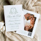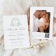 Announce your big day with this stylish sage green photo wedding save the date card. The front showcases the couple’s monogram initials encircled by a botanical crest in sage green, with "Save the Date" elegantly written in matching calligraphy on a white background. Personalise with your names, wedding date, and wedding location. The back features your vertical engagement photo along with a scannable QR code, making it easy for guests to access your wedding website. With space for custom instructions, this design blends charm and simplicity—perfect for garden, outdoor, and nature-inspired weddings.