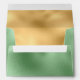 Elegant special occasion envelope done in graphics of a sage green foil look, on the outside, and a gold foil, on the inside of the envelope. Gold edged white text areas for addresses, with fully custom black text, on the backside.