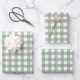 Elegant Sage Green and White Gingham Holiday Wrapping Paper Sheet
