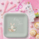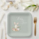 Such a sweet and elegant baby shower “baby love” paper plate for your baby shower special event. The sage green sets the tone for simplicity and elegance. What an adorable baby bunny. Such a sweet and simple way to serve your guests.