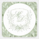 Elegant Sage Green Botanical Crest Wedding Square Sticker