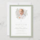 Elegant Sage Green Bow Boy Photo Baptism Invitation