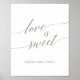 This elegant sage green calligraphy "love is sweet" sign is perfect for a simple wedding. The neutral design features a minimalist poster decorated with romantic and whimsical typography.
