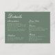 Impress your guests with this elegant formal wedding details card by JessicaAmber. This classic card features white lettering over a sage green background, displays the following details of the wedding: Accomodatio, Children, Dress Code, Dinner, and Website. Browse my collection for the matching invitation suite. For more wedding suites, visit my store Zazzle.com/EventsByJessicaAmber ••• For custom orders, message me on Zazzle