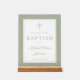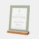Elegant Sage Green Cross Boy Baptism Welcome Acrylic Sign