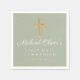 Personalised Elegant Sage Green Cross First Communion Napkins.