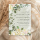 This elegant watercolor wedding invitation features soft green tones with lush yellow and blush floral accents, creating a romantic and timeless look. The delicate botanical illustrations frame the text beautifully, while the modern serif and handwritten script fonts provide a refined balance of classic and contemporary style. Perfect for spring or summer weddings, this design sets the tone for a joyful celebration surrounded by nature’s beauty.