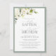 Elegant Sage Green Floral Baptism 1st Birthday Invitation