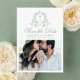 Elegant Sage Green Floral Crest Photo Wedding Save The Date