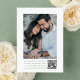 Announce your wedding with timeless charm using this sage green photo save the date card. The front showcases your custom monogram initials framed by a sage green floral crest on a white background. Your names are displayed in elegant sage green calligraphy, with your wedding date and location below. A horizontal engagement photo adds a personal and heartfelt touch. On the reverse side, a vertical engagement photo is featured with a QR code below, making it easy for guests to scan and access your wedding website and custom instructions. A beautiful choice for nature-inspired, garden, or romantic wedding celebrations.