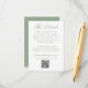 Guide your guests with ease using this elegant sage green wedding details card. “The Details” is displayed in graceful sage green calligraphy on a white background, with space to include essential wedding information such as accommodations, transportation, reception details, and more. A customisable QR code allows guests to conveniently scan and access your wedding website. The back of the card showcases the couple’s monogram initials surrounded by a white botanical floral crest on a soft sage green background, with names and wedding date below. A beautiful and functional addition to your sage green wedding invitation suite.