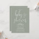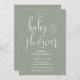This sage green elegant script gender neutral baby shower invitation can be personalised with all your special celebration information. Designed by Thisisnotme©