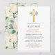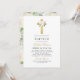 Elegant Sage Green Gold Floral Cross Baptism Invitation