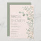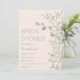 Elegant sage green casual script bridal shower with a modern calligraphy typography, and sage green, olive floral watercolor greenery foliage and faux gold glitter on pastel pink.