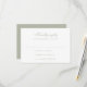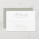 Elegant and classy Wedding RSVP response card in a sage green colour featuring a beautiful script font. Ready for you to customise with the details of your special day. Please browse the Sage Green Monogram and Floral Crest Wedding Suite for matching products.