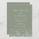 Elegant Sage Green Minimalist Boho Floral Wedding Invitation