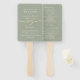 Modern, minimalist, elegant, simple calligraphy sage green wedding program hand fans with gold rope heart.