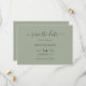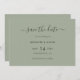 Announce your sage green wedding party with these minimalist, yet elegant save the date cards. Easily personalise online. Matching items available to complement this wedding save the date card with a modern script.