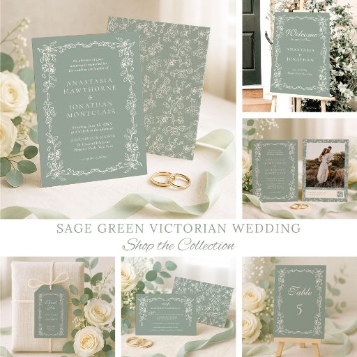 Elegant Sage Green Vintage Victorian Wedding Invitation