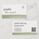 This minimalist business card design features a soft sage green watercolor brushstroke across the bottom for a calming, nature-inspired aesthetic. Paired with a clean serif and script font combination and an integrated QR code, this card offers a modern, functional, and elegant solution for creative professionals and wellness brands alike.