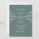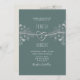 Elegant, simple calligraphy script, vintage sage green wedding invitation with silver rope heart and gilded floral lace.
