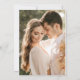 Our elegant sage green wedding invitation features a leafy botanical wreath encircling the bride's and groom's monogram initials. This elegant wedding invitation can be personalised with your information in beautiful white calligraphy script on a sage green background. Back of the card displays your favourite engagement photo.