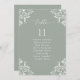Elegant Sage Wedding Seating Chart Cards: Use these vintage, classic table lists for your seating chart at your wedding or event. This design features the word "Table" in an elegant calligraphy with an ornate vintage corners design for a luxe look. It's set in dusty blue / blue grey / slate blue, but you can change the colour to anything you like! Just click "customise more" and click on the element to change the colour.