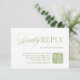 This refined RSVP card features sage green serif typography with a flowing script accent and a QR code for guests to respond online. Ideal for modern weddings that blend timeless elegance with digital convenience. Includes space for your wedding website and a deadline for replies. Perfect for formal garden weddings, summer celebrations, or traditional events with a modern touch.