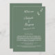 A beautiful elegant formal script typography wedding design with a sage olive green background colour. A unique design that uses a personal classic calligraphy wedding invitation font and a hand drawn greenery leaf branch. A formal script calligraphy design with tones of sage olive green. An elegant wedding itinerary program card design with classic traditional elements. Matching wedding invitations and other stationery items are also available.