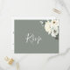 This elegant simple sage RSVP postcard features a watercolor ivory floral design with elegant script font. Personalise with your own details.