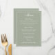 An elegant way to show your guests their menu options. In sage green with white writing. An elegant script wedding font has been combined with a modern style all caps font creating a stylish, yet user friendly wedding menu.