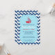 Ahoy! It is a boy! Invite friends and family to sail over and celebrate the arrival of your little sailor baby boy with this classy and elegant nautical baby shower invitation! It has a cute little sailboat with a sail of colourful stripes pattern and a star on its board. A colour palette of red, white, blue and a blue and white chevron background, this invitation is perfect for a nautical theme party for baby boys! Personalise easily with your party details.