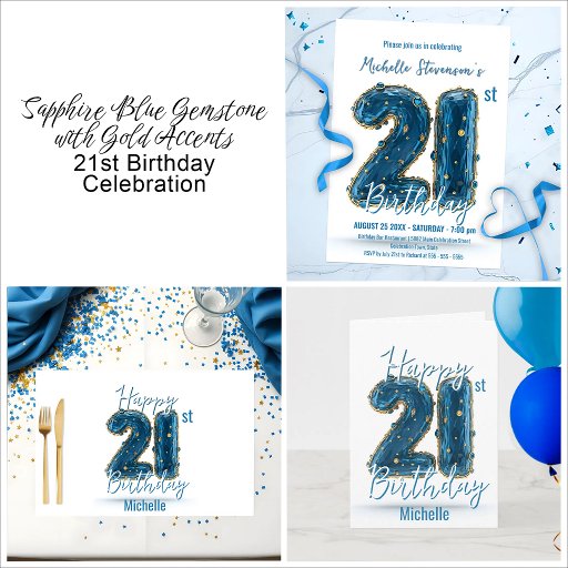 Elegant Sapphire & Gold 21st Birthday Celebration Napkin