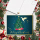 Elegant Sapphire Hummingbird & Christmas Tree Foil Holiday Postcard