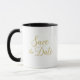 Celebrate your upcoming wedding in style with this elegant “Save the Date” mug. Featuring gold script text and space to personalise names, date, and location, it's the perfect keepsake for the bride, groom, or wedding party. A classy gift idea or announcement your loved ones will actually use!