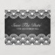Elegant Save The Date Scalloped Pattern Black Announcement Postcard