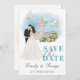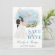Elegant Save the Date with Bride & Groom Fountain Invitation