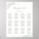 Elegant Calligraphy Scrip 12 Table Roses Wedding Seating Chart. Vintage Sage Green Floral 12 Table Wedding Welcome Seating Sign