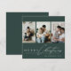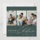 Elegant Script 3 Photo Collage Green Christmas Holiday Card