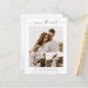 An elegant script 3 photo wedding save the date with vertical photo and minimal text. Click the personalise to customise this design.