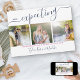 We're expecting .. gender neutral photo pregnancy announcement with 3 of your fave pics! The photo template is set up for you to add your own photos, which are displayed in square / instagram format. "expecting" is lettered in elegant handwritten script typography and the pregnancy announcement message is fully editable for you to customise with baby's due date and your names. A simple, modern minimalist design in pink and navy blue, to share your wonderful news.